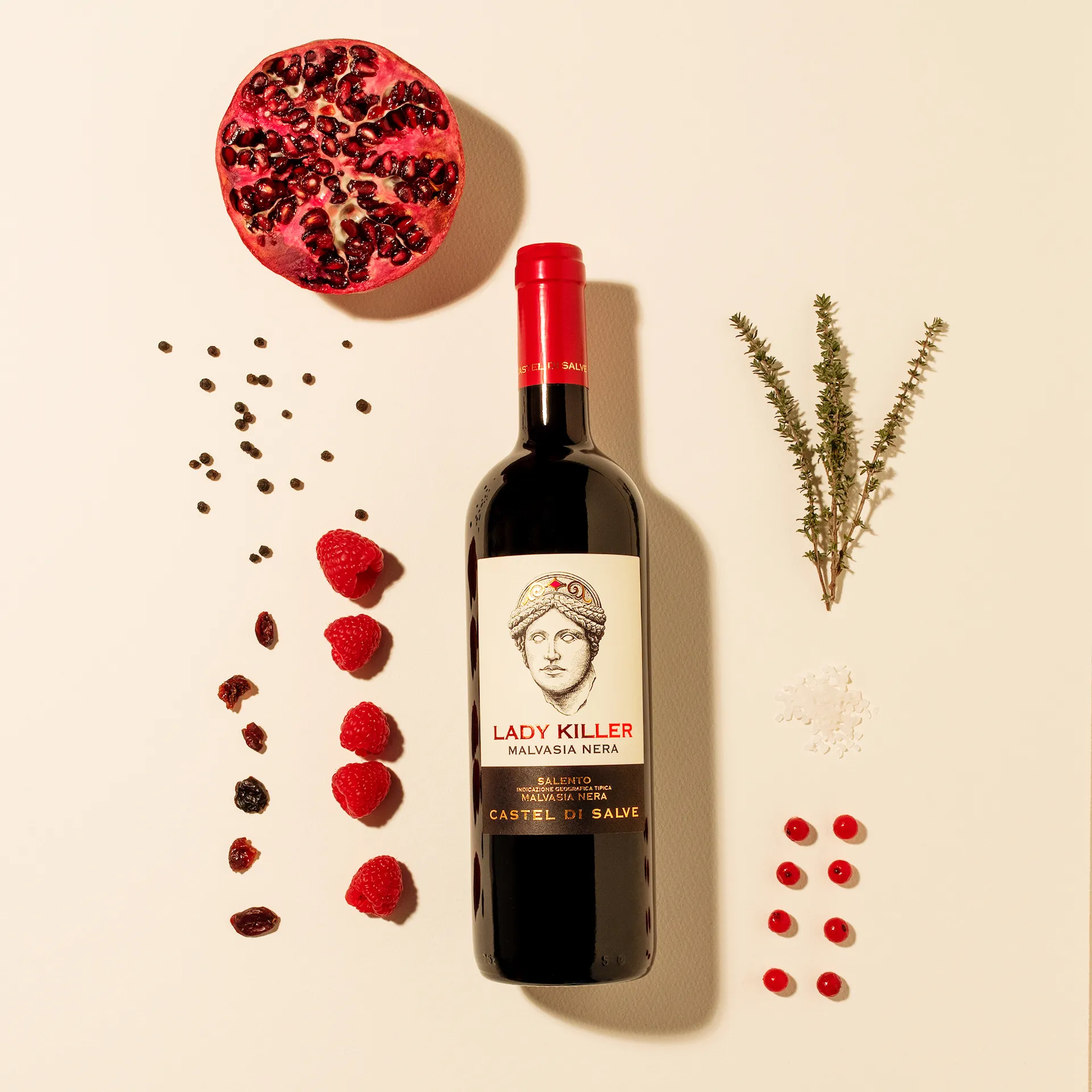 Nose: Intense fruity aromas of pomegranate and prickly pear, with balsamic notes of thyme and marjoram